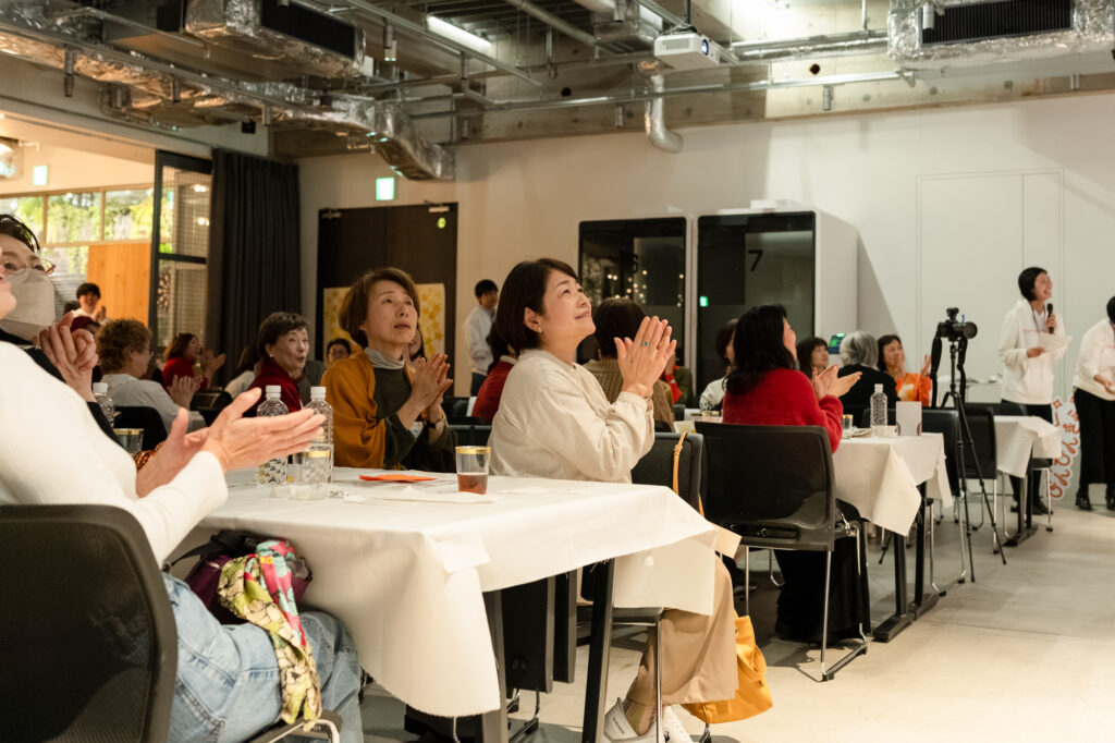 開会では、代表取締役・喜多尾衣利子より創業の想いやこれまでの歩み、きらりさんへの感謝をお伝えし、乾杯のご挨拶で会がスタート。会場は終始あたたかな空気に包まれ、食事とともに自然な交流が広がりました。