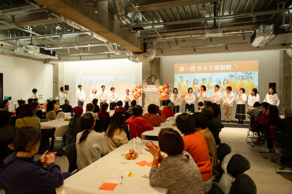 日頃より多くのきらりさんに支えられている中、本感謝祭では、特にご活躍いただいているきらりさんの中から約70名をお招きし、運営からの感謝やご利用者さまの想いを代弁してお届けするとともに、より一層のモチベーション向上や仕事への誇りを感じていただくこと、さらにきらりさん同士の交流を深めることを目的として企画しました。